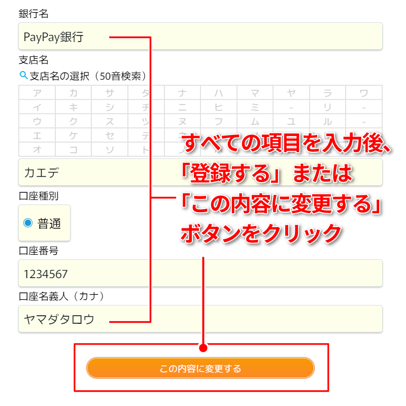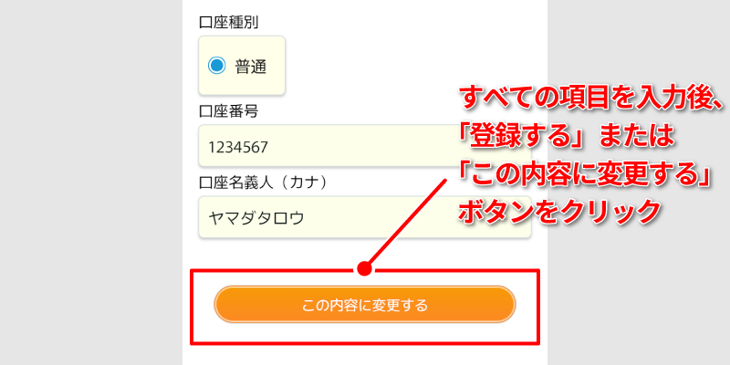 すべての項目を入力後、「登録する」ボタンをタップすれば振込先口座の登録が完了します。