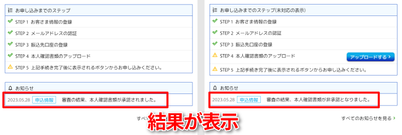 当社より「承認」の通知が届きましたら本人確認のお手続きは完了です。