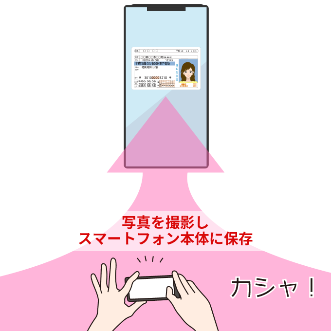 まずは本人確認書類の写真を撮影し、スマートフォン本体に保存してください。